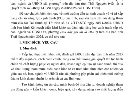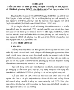 KẾ HOẠCH TRIỂN KHAI KHẢO SÁT ĐÁNH GIÁ NĂNG LỰC CẠNH TRANH CẤP SỞ, BAN NGÀNH VÀ UBND XÃ, PHƯỜNG (DDCI) TRÊN ĐỊA BÀN TỈNH THÁI NGUYÊN NĂM 2025