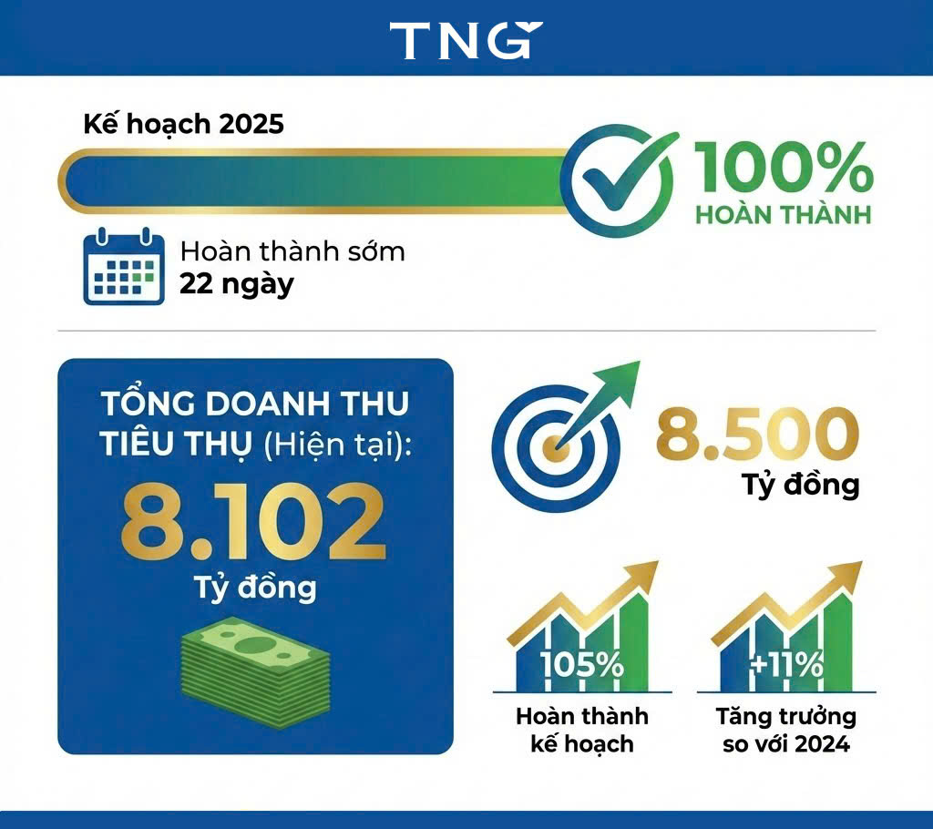 TNG HOÀN THÀNH 100% DOANH THU NĂM 2025 TRƯỚC 22 NGÀY
